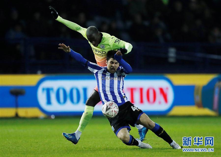 3月4日,曼彻斯特城队球员门迪(后)在比赛中与谢菲尔德星期三队球员弗雷斯蒂耶里拼抢。 当日,在谢菲尔德进行的2019-2020英格兰足总杯第五轮比赛中,曼彻斯特城队客场以1比0战胜谢菲尔德星期三队,晋级八强。 新华社/路透
