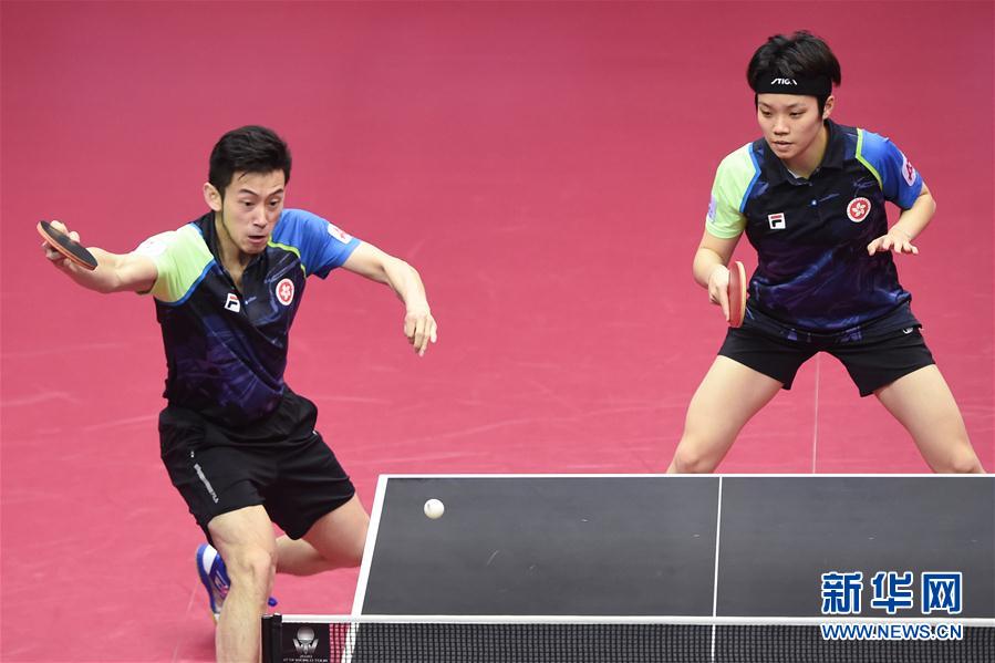 3月5日,黄镇廷(左)/杜凯琹在比赛中。 当日,在多哈举行的2020年国际乒联世界巡回赛卡塔尔公开赛混双首轮的比赛中,中国选手王楚钦/孙颖莎以3比0战胜中国香港选手黄镇廷/杜凯琹,晋级下一轮。 新华社发(尼库摄)