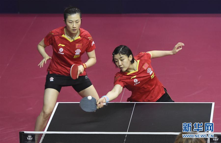 3月5日,丁宁(左)/陈梦在比赛中。 当日,在2020年国际乒联世界巡回赛卡塔尔公开赛女双首轮的比赛中,中国选手丁宁/陈梦以3比0战胜克里斯滕森(丹麦)/马尔凯蒂(比利时)组合,晋级下一轮。 新华社发(尼库摄)