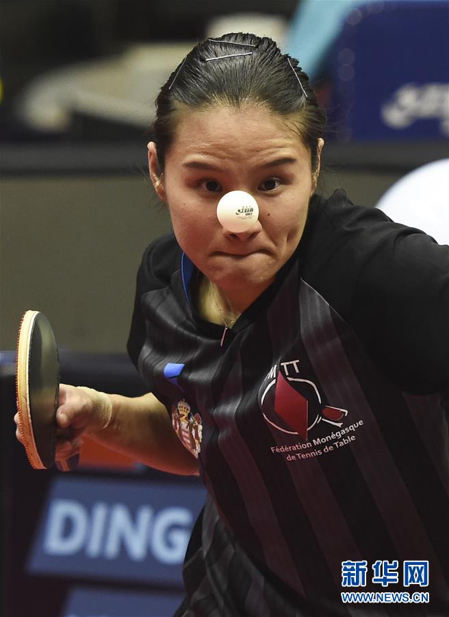 3月5日,杨晓欣在比赛中发球。 当日,在2020年国际乒联世界巡回赛卡塔尔公开赛女单首轮的比赛中,中国选手丁宁以4比0战胜摩纳哥选手杨晓欣,晋级下一轮。 新华社发(尼库摄)