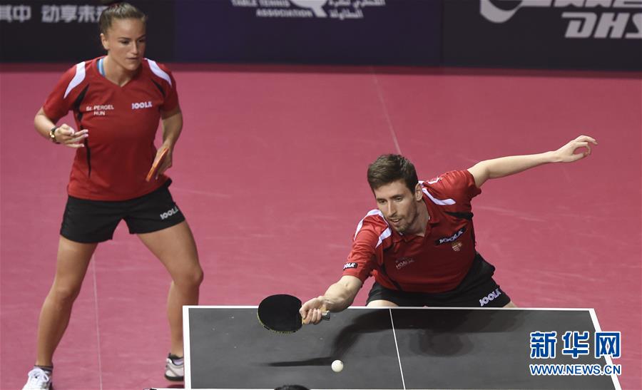 3月5日,苏迪(右)/佩格尔在比赛中。 当日,在2020年国际乒联世界巡回赛卡塔尔公开赛混双四分之一决赛中,中国选手王楚钦/孙颖莎以3比0战胜匈牙利选手苏迪/佩格尔,晋级四强。 新华社发(尼库摄)