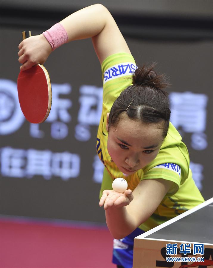 3月5日,伊藤美诚在比赛中发球。 当日,在2020年国际乒联世界巡回赛卡塔尔公开赛女单首轮的比赛中,中国选手顾玉婷以1比4不敌日本选手伊藤美诚,无缘下一轮。 新华社发(尼库摄)