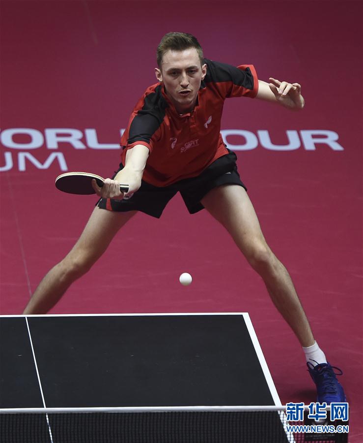 3月8日,皮奇福德在比赛中回球。 当日,在2020年国际乒联世界巡回赛卡塔尔公开赛男单决赛中,英国选手皮奇福德以2比4不敌中国选手樊振东,获得亚军。 新华社发(尼库摄)
