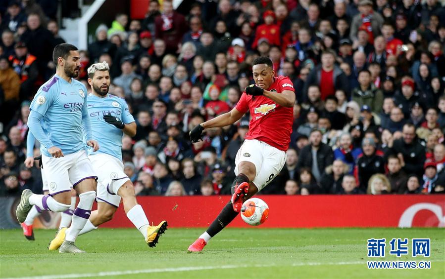 3月8日,曼联队球员马夏尔(右)攻门得分。 当日,在2019-2020赛季英格兰足球超级联赛第29轮比赛中,曼联队主场以2比0战胜曼城队。 新华社/路透