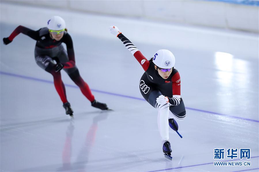 3月8日,中国选手李奇时(前)在比赛中。 当日,在荷兰海伦芬举行的2019-2020赛季国际滑联速度滑冰世界杯总决赛男女混合接力表演赛中,中国选手李奇时/阿勒玛斯·卡汉拜以2分58秒54的成绩获得冠军。 新华社记者张铖摄