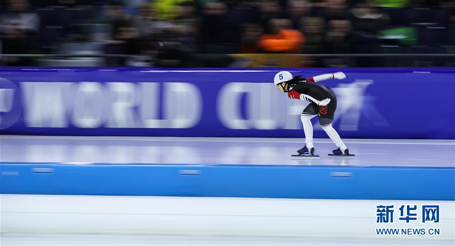 3月8日,中国选手李奇时在比赛中。 当日,在荷兰海伦芬举行的2019-2020赛季国际滑联速度滑冰世界杯总决赛男女混合接力表演赛中,中国选手李奇时/阿勒玛斯·卡汉拜以2分58秒54的成绩获得冠军。 新华社记者张铖摄