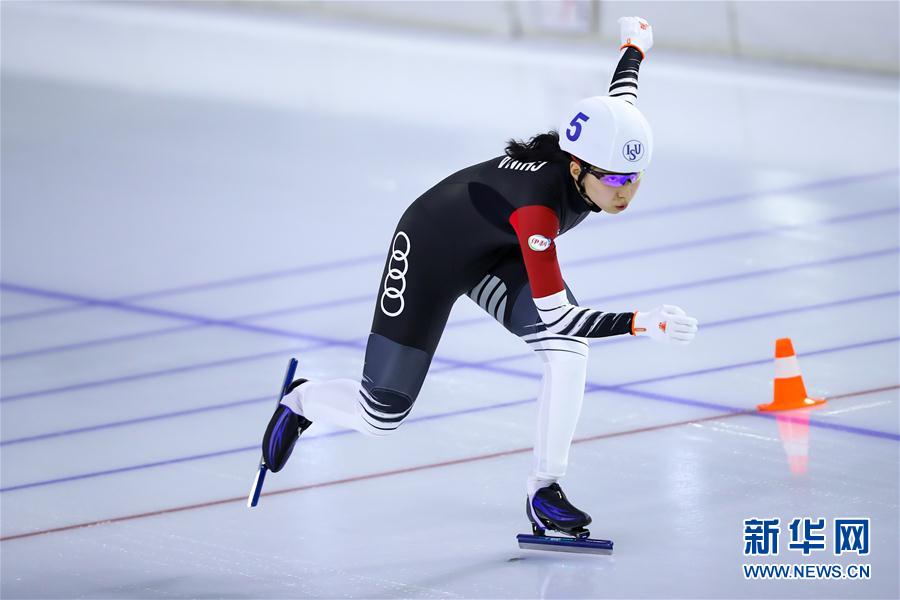 3月8日,中国选手李奇时在比赛中。 当日,在荷兰海伦芬举行的2019-2020赛季国际滑联速度滑冰世界杯总决赛男女混合接力表演赛中,中国选手李奇时/阿勒玛斯·卡汉拜以2分58秒54的成绩获得冠军。 新华社记者张铖摄