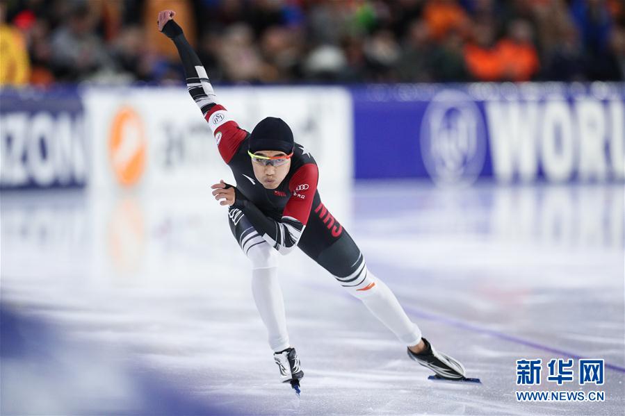 3月8日,中国选手高亭宇在比赛中。 当日,在荷兰海伦芬举行的2019-2020赛季国际滑联速度滑冰世界杯总决赛男子500米第二次比赛中,中国选手高亭宇以34秒660的成绩获得第十名。他在本赛季的世界杯积分榜上以344分列该项目第九名。 新华社记者郑焕松摄