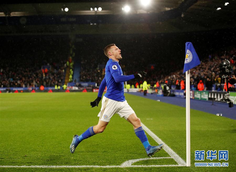 3月9日,莱斯特城队球员瓦尔迪庆祝进球。 当日,在2019-2020赛季英超联赛第29轮比赛中,莱斯特城队主场以4比0战胜阿斯顿维拉队。 新华社/路透