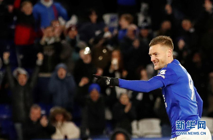 3月9日,莱斯特城队球员瓦尔迪庆祝进球。 当日,在2019-2020赛季英超联赛第29轮比赛中,莱斯特城队主场以4比0战胜阿斯顿维拉队。 新华社/路透