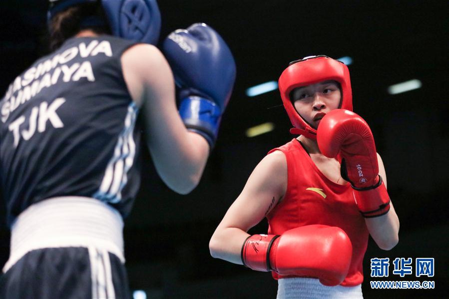 3月9日,常园(右)与科西莫娃在比赛中。 当日,在约旦安曼举行的2020年东京奥运会拳击亚洲大洋洲区资格赛女子48-51公斤级四分之一决赛中,中国选手常园战胜塔吉克斯坦选手科西莫娃,晋级四强,并获得东京奥运会参赛席位。 新华社发(穆罕默德·阿布·古什摄)