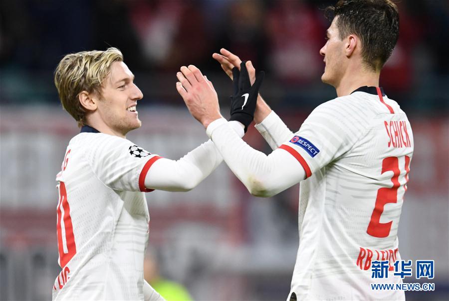 3月10日,莱比锡队球员福斯伯格(左)在进球后和队友希克庆祝。 当日,在2019-2020赛季欧洲足球冠军联赛八分之一决赛次回合比赛中,英超托特纳姆热刺队客场以0比3不敌德甲莱比锡队,从而以总比分0比4无缘八强。 新华社/路透