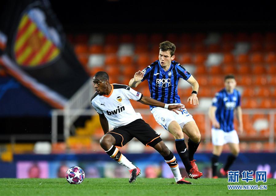3月10日,亚特兰大队球员德容恩(右)和巴伦西亚队球员孔多比亚拼抢。 当日,在2019-2020赛季欧洲足球冠军联赛八分之一决赛次回合比赛中,意甲亚特兰大队客场以4比3战胜西甲巴伦西亚队,以8比4的总比分晋级八强。 新华社/路透