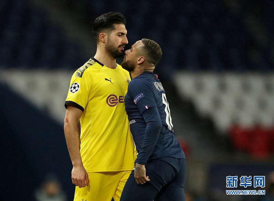 3月11日,巴黎圣日耳曼队球员内马尔(右)与多特蒙德队球员埃姆雷·詹发生争执。 当日,在2019-2020赛季欧洲足球冠军联赛八分之一决赛第二回合比赛中,法甲巴黎圣日耳曼队主场以2比0战胜德甲多特蒙德队,从而以总比分3比2晋级八强。 新华社/路透
