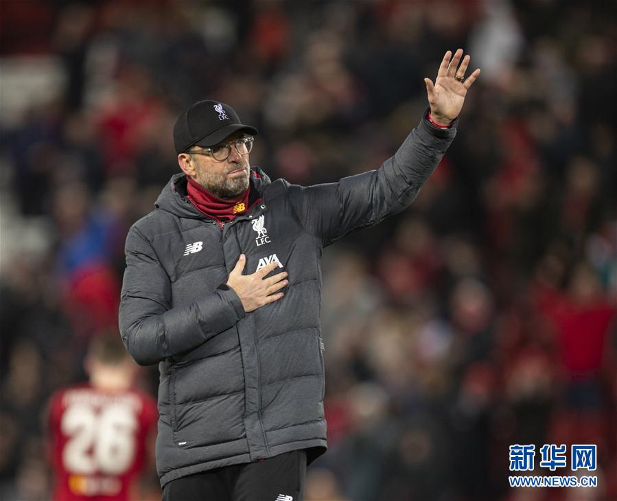 3月11日,利物浦队主帅克洛普赛后向球迷致意。 当日,在2019/2020赛季欧洲足球冠军联赛八分之一决赛第二回合比赛中,英超利物浦队主场通过加时赛以2比3不敌西甲马德里竞技队,从而以总比分2比4遭淘汰,无缘八强。 新华社发