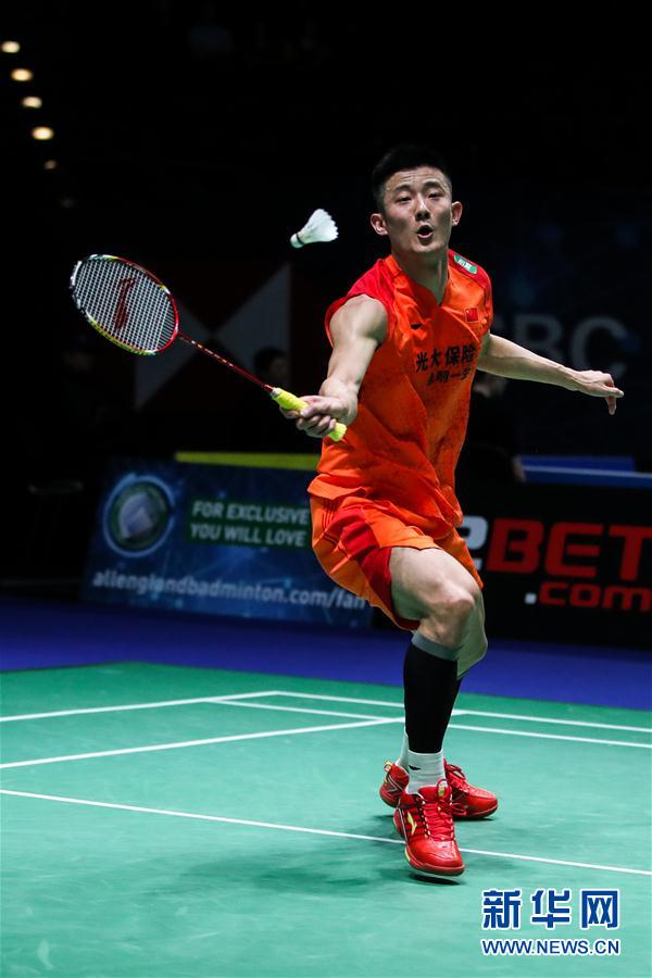 3月11日,谌龙在比赛中回球。 当日,在英国伯明翰进行的全英羽毛球公开赛男单首轮比赛中,中国选手谌龙以2比0战胜印度选手斯里坎特,晋级下一轮。 新华社发(唐诗摄)