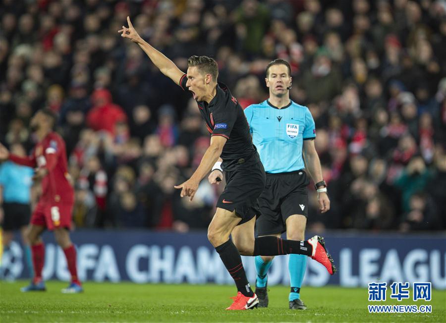 3月11日,马德里竞技队球员略伦特在进球后庆祝。 当日,在2019-2020赛季欧洲足球冠军联赛八分之一决赛第二回合比赛中,西甲马德里竞技队客场通过加时赛以3比2战胜英超利物浦队,从而以总比分4比2晋级八强。 新华社发