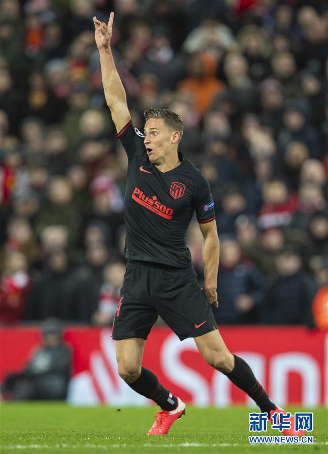 3月11日,马德里竞技队球员略伦特在进球后庆祝。 当日,在2019-2020赛季欧洲足球冠军联赛八分之一决赛第二回合比赛中,西甲马德里竞技队客场通过加时赛以3比2战胜英超利物浦队,从而以总比分4比2晋级八强。 新华社发