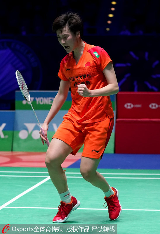 人民网北京3月14日电(王雪纯)北京时间3月13日,在2020年世界羽联SUPER1000赛事全英公开赛的女单1/4决赛中,陈雨菲以17-21、21-15、21-17击败因达农,最终比分以2-1取胜,晋级四强。