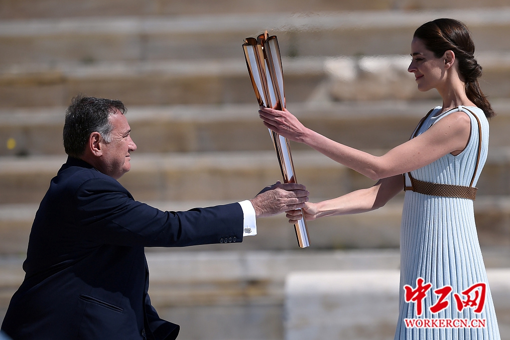 2020年3月18日,希腊雅典,2020东京奥运会前瞻,奥运火炬交接仪式举行。(本组图片来源视觉中国,版权作品,请勿转载。)
