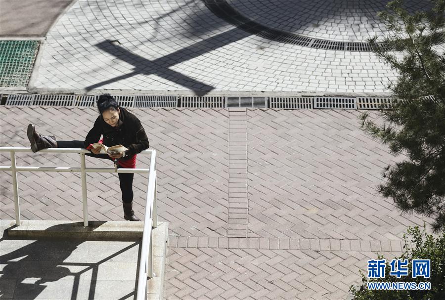 春天来临,天气转暖,随着疫情防控形势向好,北京市西城区香炉营东巷某小区的居民纷纷走出家门,以各种方式锻炼身体,强健体魄,享受春光。 这是一名居民在一边压腿,一边看书,健身读书两不误(3月19日摄)。 新华社记者兰红光摄