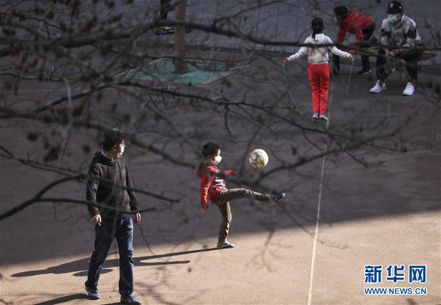 春天来临,天气转暖,随着疫情防控形势向好,北京市西城区香炉营东巷某小区的居民纷纷走出家门,以各种方式锻炼身体,强健体魄,享受春光。 这是一个男孩在踢球(3月17日摄)。 新华社记者兰红光摄