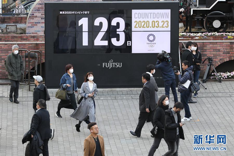 3月23日,行人在日本东京新桥地区经过显示东京奥运会倒计时的大屏幕。 当日,东京都知事小池百合子在东京市政府举行的新闻发布会上表示,她对国际奥委会明确表示不会取消东京奥运会感到高兴,并称现在奥运会有了新的目标,就是战胜新冠病毒。国际奥委会执委会在洛桑当地时间22日发布声明,表示将在未来四周内完成对疫情的评估,并完成对东京奥运会举办方案的详细讨论,推迟举办是备选方案之一,但取消东京奥运会不在议程之上。 新华社记者杜潇逸摄