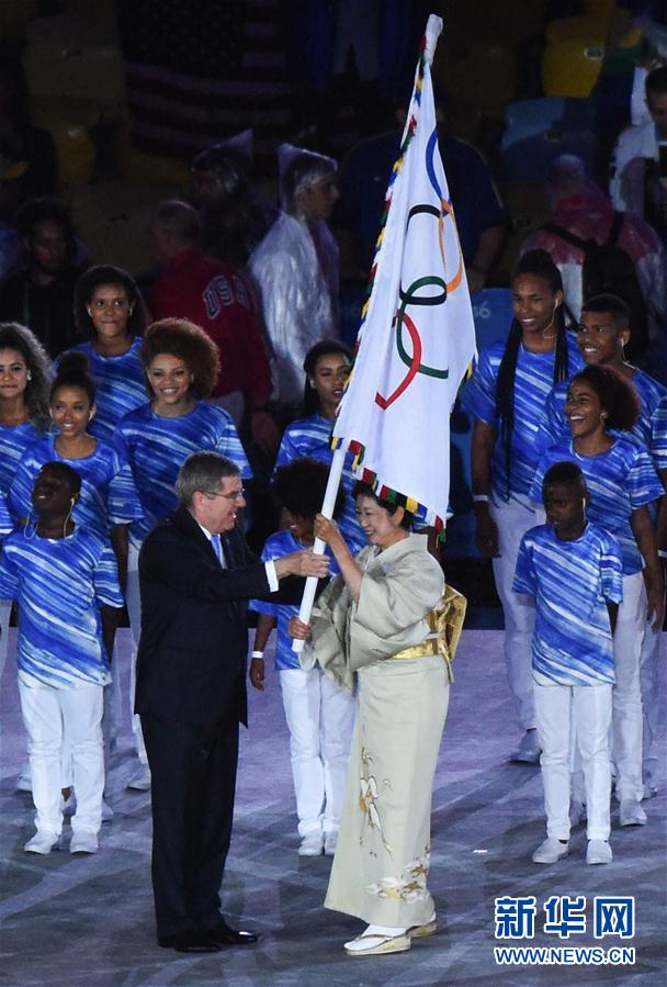 3月24日,鉴于当前新冠肺炎疫情形势,国际奥委会与东京奥组委发表联合声明,东京奥运会将改期至2020年后,但不迟于2021年夏天的日期举行。 这是2016年8月21日,国际奥委会主席巴赫(前左)在巴西里约热内卢举行的第31届夏季奥林匹克运动会闭幕式上将奥林匹克会旗交给东京都知事小池百合子(前右)。 新华社记者岳月伟摄