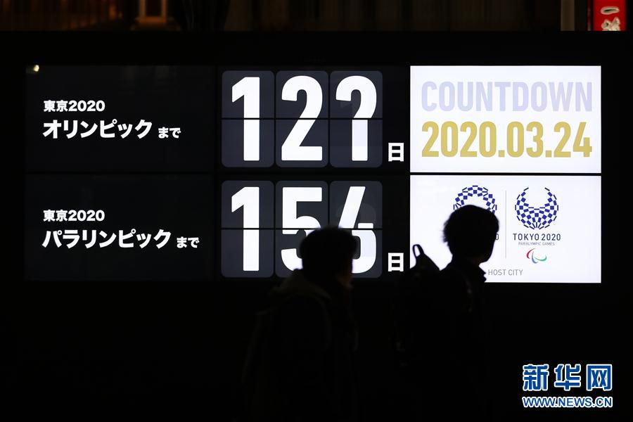 3月24日,受新型冠状病毒肺炎全球疫情影响,国际奥委会与东京奥组委发表联合声明,东京第32届奥运会将改期至2020年后,但不迟于2021年夏天的日期举行。 这是3月24日,行人经过日本东京新桥地区显示东京奥运会和残奥会倒计时天数的电子屏。 新华社记者杜潇逸摄