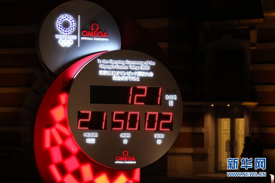 3月24日,受新型冠状病毒肺炎全球疫情影响,国际奥委会与东京奥组委发表联合声明,东京第32届奥运会将改期至2020年后,但不迟于2021年夏天的日期举行。 这是3月24日晚在日本东京站前拍摄的东京奥运会倒计时电子钟。 新华社记者杜潇逸摄