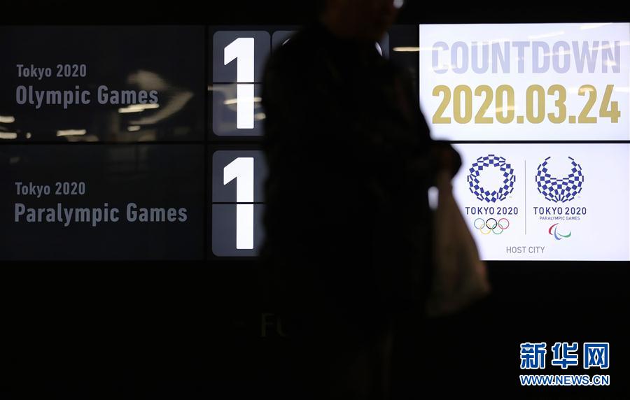 3月24日,受新型冠状病毒肺炎全球疫情影响,国际奥委会与东京奥组委发表联合声明,东京第32届奥运会将改期至2020年后,但不迟于2021年夏天的日期举行。 这是3月24日,行人经过日本东京新桥地区显示东京奥运会和残奥会倒计时的电子屏。 新华社记者杜潇逸摄