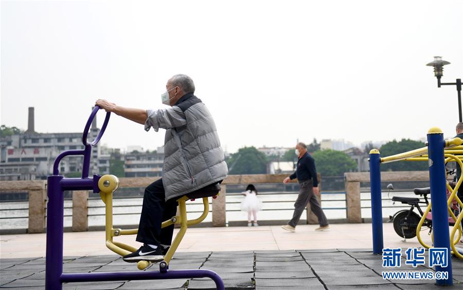 4月10日,市民在珠江边锻炼。 随着疫情防控形势持续向好,广州市民纷纷走出家门,以各种方式锻炼身体,愉悦心情。 新华社记者卢汉欣摄