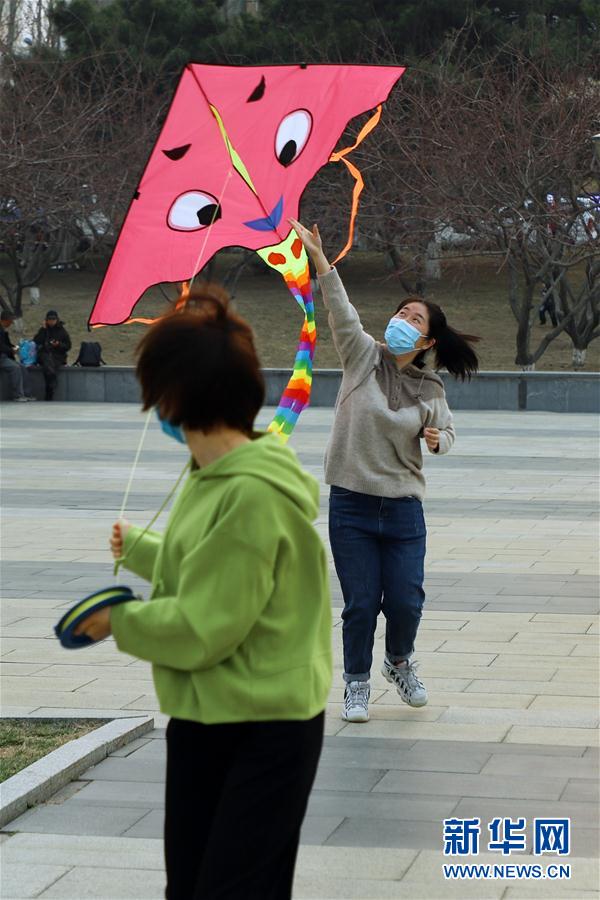 4月16日,在长春市文化广场,市民在放风筝。 近日,长春市天气渐暖,市民在做好个人防护的前提下,来到户外健身锻炼,享受春光。 新华社记者雒圆摄