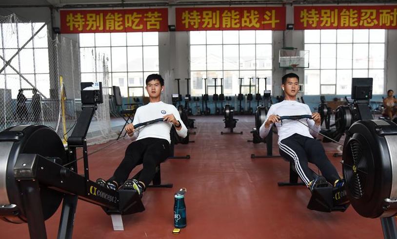 4月17日,中国女子七人制橄榄球队球员杨飞飞(中)进行体能训练。 首次获得奥运会参赛资格的中国女子七人制橄榄球队正在海口观澜湖足球训练基地集训,备战延期举行的东京奥运会。据了解,球队接下来要在海口进行三周以上的集训。 新华社记者郭程摄