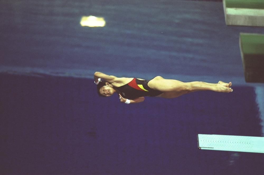 央视网消息:1996年7月31日,亚特兰大,中国运动员伏明霞在女子三米板比赛中。