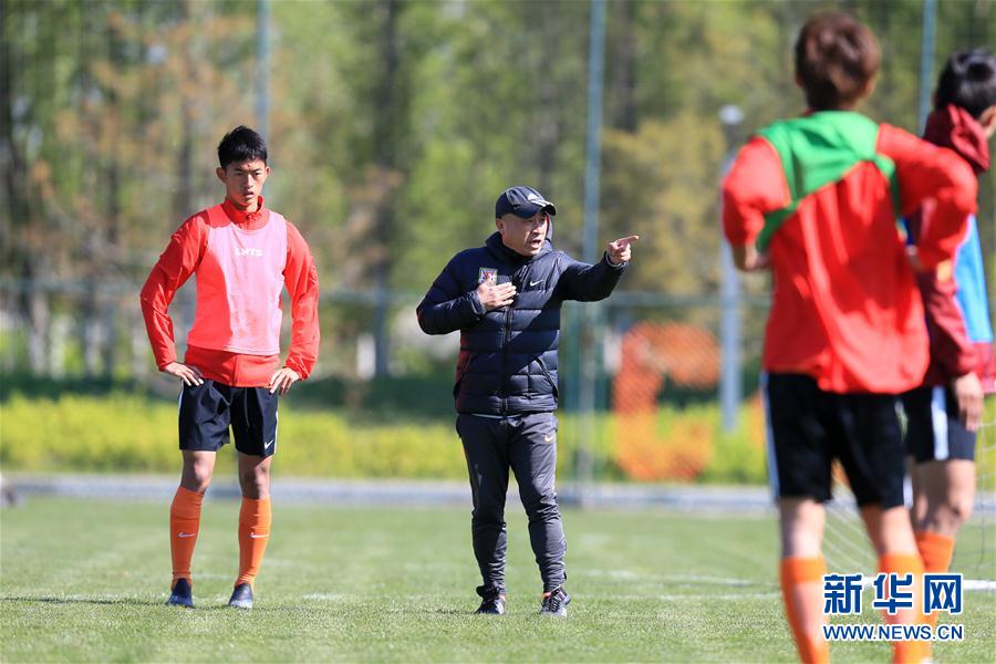 4月22日,教练指导球员们在操场进行训练。 4月15日至4月17日,根据山东省教育厅公布的《关于2020年春季开学工作的通知》,山东鲁能泰山足球学校U19队球员第一批返校开学,恢复正常学习、训练,备战新赛季。在防疫部门指导下学校实行封闭式管理,严禁学生外出,每间宿舍安排一名学生住宿,餐厅实行定点定位定向,错时就餐等相关措施,全力保障师生健康。 新华社发(刘锋摄)