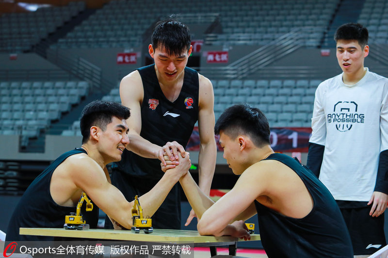 人民网北京4月23日电(郝帅)北京时间4月22日,浙江稠州银行男篮在疫情期间进行了集训直播,本次训练以“CBA没有停”为口号,通过队内对抗赛、1V1单挑赛、定点投篮PK赛等形式,让大家在直播中了解球员的备战情况。