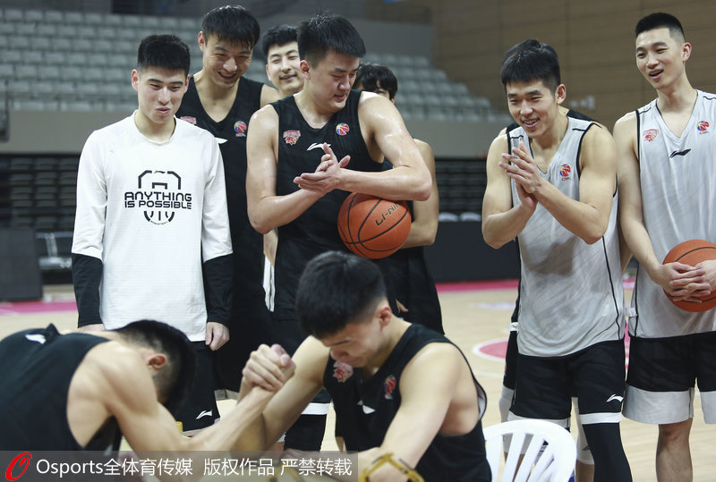 浙江稠州银行男篮集训 训练结束掰腕比赛成焦点