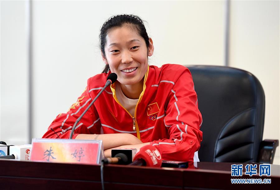 4月28日,在五四青年节来临之际,共青团中央、全国青联共同颁授第24届“中国青年五四奖章”,表彰青年中的优秀典型和模范代表。中国国家女子排球队队长朱婷与索契冬奥会速度滑冰冠军张虹荣获奖章。 图为2016年9月3日,载誉回乡的里约奥运会女排最有价值球员朱婷在郑州举行了媒体见面会。 新华社记者李安摄