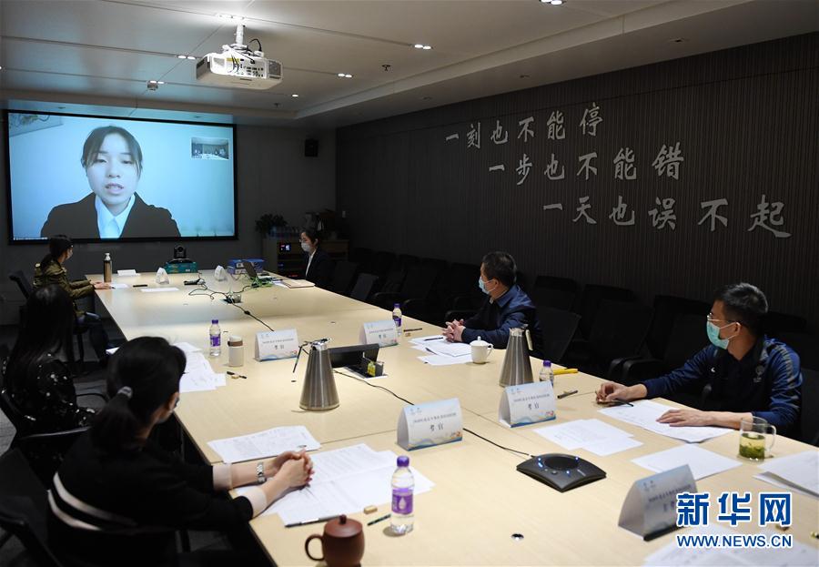 4月29日,考生进行线上面试。 当日,为严格落实北京市疫情防控要求,北京冬奥组委举行了“零接触 云面试”校园招聘线上面试活动。据了解,本次面试共设置了12个网上考场,超过400名考生隔空参加。 新华社记者 张晨霖 摄