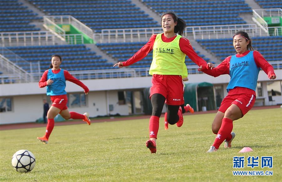 4月29日,在长春市经开体育场,长春大众卓越队球员司雨(中)在对抗训练中射门。 近日,长春大众卓越女足俱乐部在做好疫情防控的同时,逐步恢复了球队的日常训练,为新赛季备战。 新华记者雒圆摄