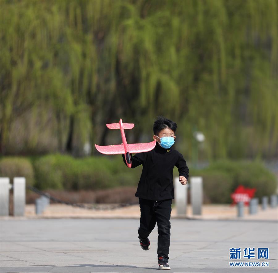 4月29日,一名儿童在本溪市枫叶广场奔跑。 近日,辽宁省本溪市天气渐暖,儿童们在家长的陪伴下来到户外嬉戏健身,享受春光。 新华社记者姚剑锋摄