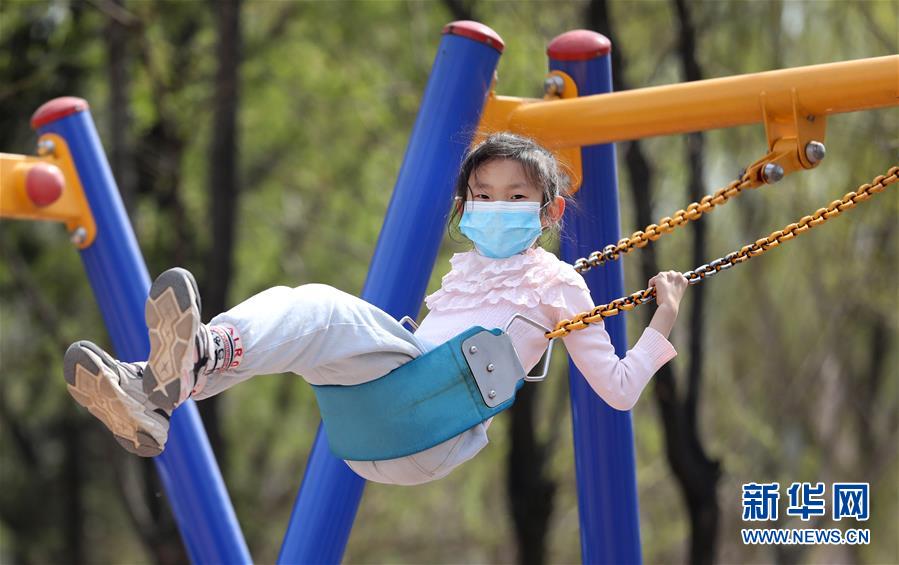 4月29日,一名儿童在本溪市枫叶广场荡秋千。 近日,辽宁省本溪市天气渐暖,儿童们在家长的陪伴下来到户外嬉戏健身,享受春光。 新华社记者姚剑锋摄