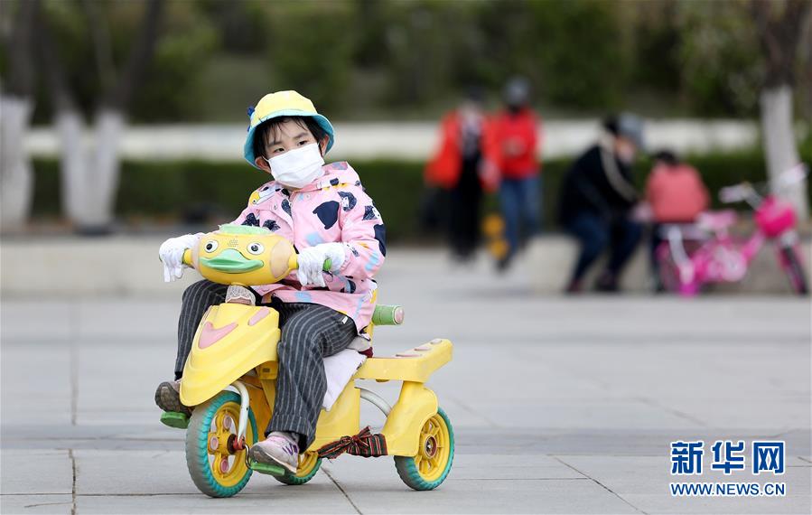 4月29日,一名儿童在本溪市枫叶广场骑儿童自行车。 近日,辽宁省本溪市天气渐暖,儿童们在家长的陪伴下来到户外嬉戏健身,享受春光。 新华社记者姚剑锋摄