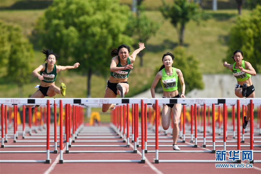 4月30日,在江苏省体育局训练中心,江苏省田径队短跨组运动员王逗(左二)在队内女子组100米栏比赛中。 受疫情影响,国内外体育赛事相继延期或取消,在赛事空窗期,江苏省体育局在做好疫情防控的同时,针对运动员体能、专项技战术等方面合理调整训练计划,通过“大比武”、阶段性测验和内部比赛等方式,赛练结合、以赛代练,逐步形成疫情防控下的训练新局面。 新华社记者李博摄