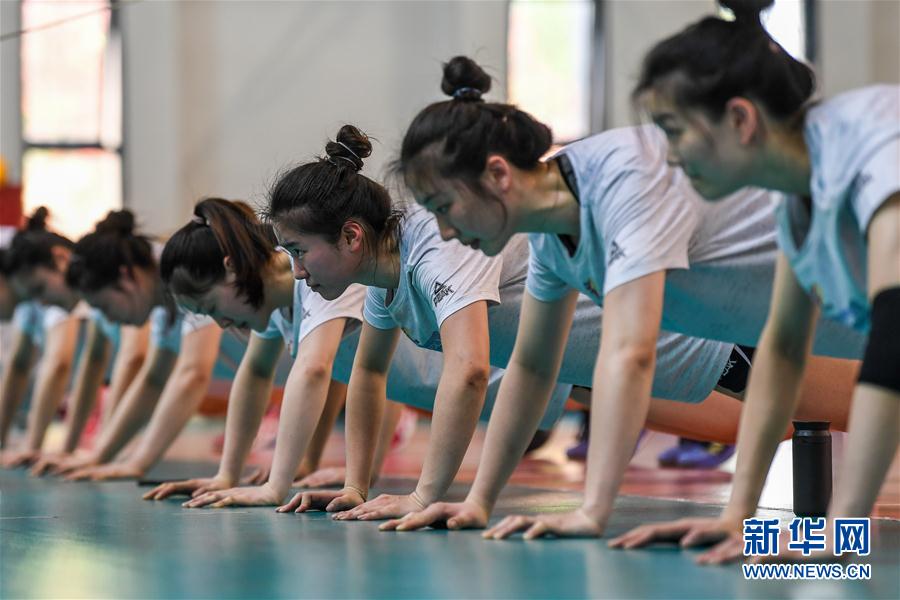 4月30日,江苏中天钢铁女子排球队球员在江苏省体育局训练中心内训练。 受疫情影响,国内外体育赛事相继延期或取消,在赛事空窗期,江苏省体育局在做好疫情防控的同时,针对运动员体能、专项技战术等方面合理调整训练计划,通过“大比武”、阶段性测验和内部比赛等方式,赛练结合、以赛代练,逐步形成疫情防控下的训练新局面。 新华社记者李博摄