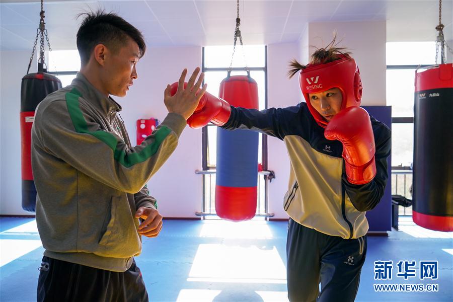 江苏省拳击队女子60公斤级运动员王聪(右)在南京市清凉山体育运动学校内训练(2020年4月28日摄)。受疫情影响,国内外体育赛事相继延期或取消,在赛事空窗期,江苏省体育局在做好疫情防控的同时,针对运动员体能、专项技战术等方面合理调整训练计划,通过“大比武”、阶段性测验和内部比赛等方式,赛练结合、以赛代练,逐步形成疫情防控下的训练新局面。 新华社记者李博摄