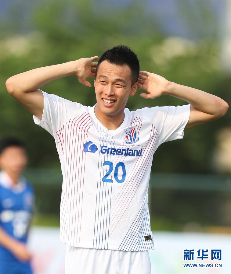 5月4日,上海绿地申花白队球员金信煜在比赛中。 当日,2020“三菱重工”绿地申花蓝白争霸赛的首场比赛在上海开赛,蓝队与白队以1比1的比分战平。据悉,绿地申花蓝白争霸赛剩余两场比赛将分别于5月12日、17日进行。 新华社记者丁汀摄