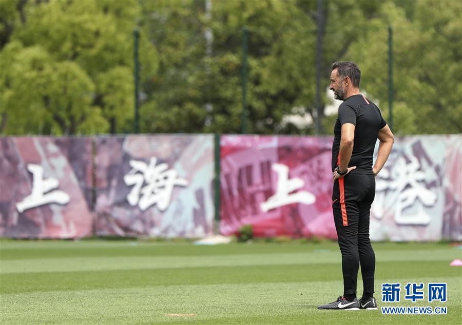 5月7日,上海上港队主教练佩雷拉观看训练。 当日,上海上港队举行媒体开放日活动。目前,球队在做好防控疫情工作的前提下进行正常训练。 新华社记者丁汀摄