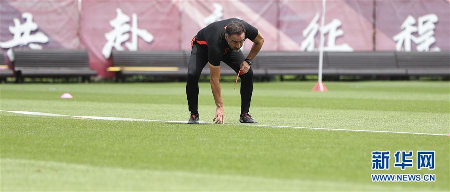 5月7日,上海上港队主教练佩雷拉在训练场上。 当日,上海上港队举行媒体开放日活动。目前,球队在做好防控疫情工作的前提下进行正常训练。 新华社记者丁汀摄